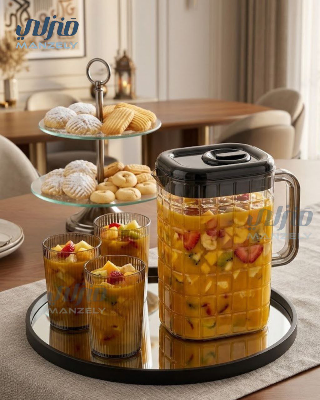 _الطقم مكون من دورق + 2 كوب _عملي وخفيف في الإيد وشكله يلفت الأنظار