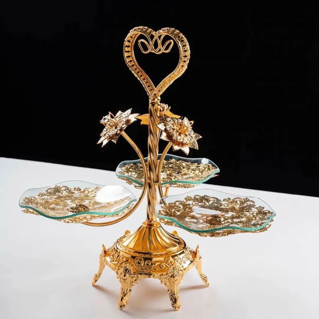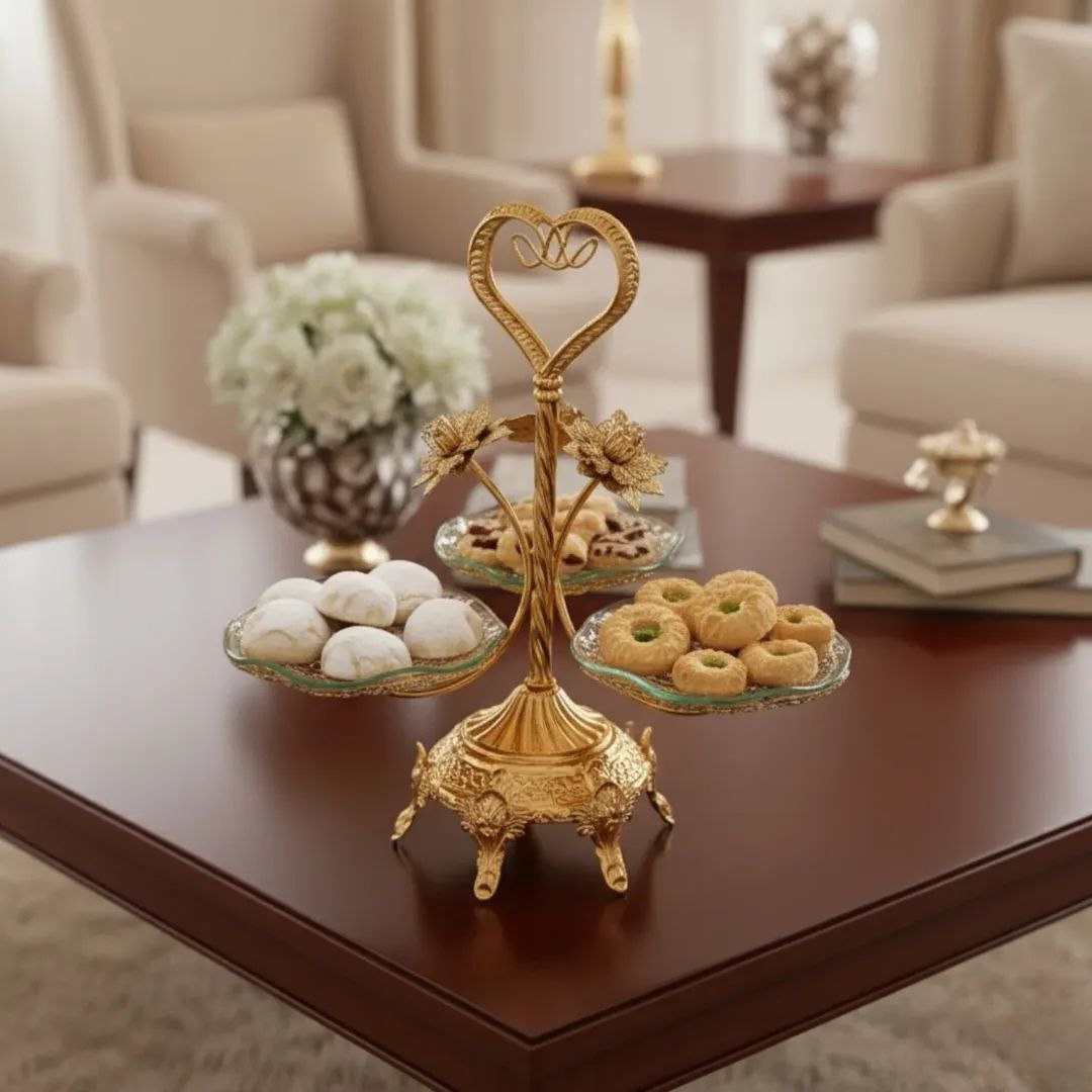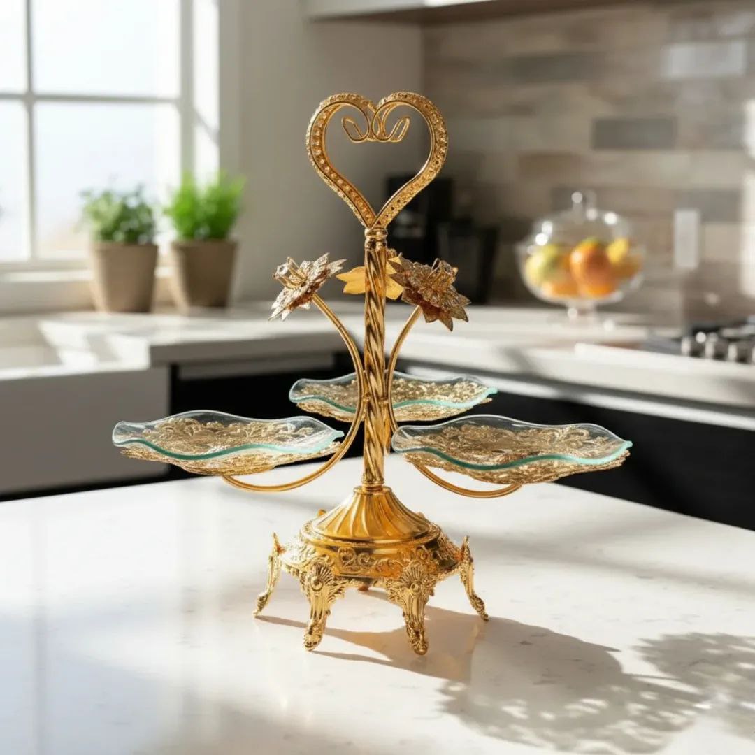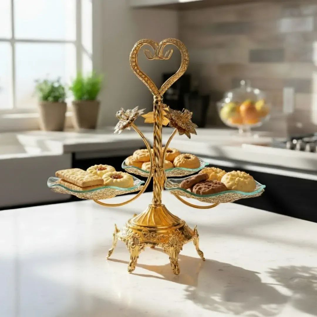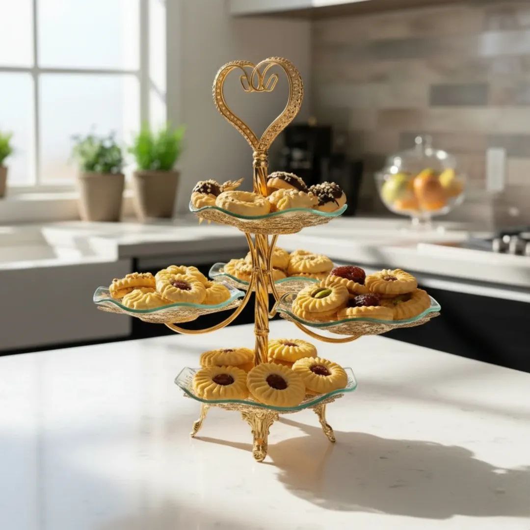 _شياله 4×1 هتستخدميها للحلويات والمخبوزات و الكحك و البسكويت و كمان الفطار و الساليزونات_الخامه معدن مطلي جووولد غير قابل للصدأ _طبق زجاج بحامل معدن جولد