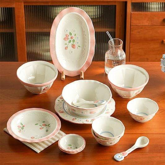 _مصنوع من خامه متينة وعالية الجوده تتحمل الاستخدام المتكرر وسهل التنظيف_حراري بيدخل فرن و ميكرويف و غساله الاطباق_المقاسات ف الصورالعدد : 1 طاجن كبير + 1 سرفيس كبير + 1 سرفيس مدور كبير + 2 طبق وجبه + 6 بولات وسط + 1 طاجن وسط