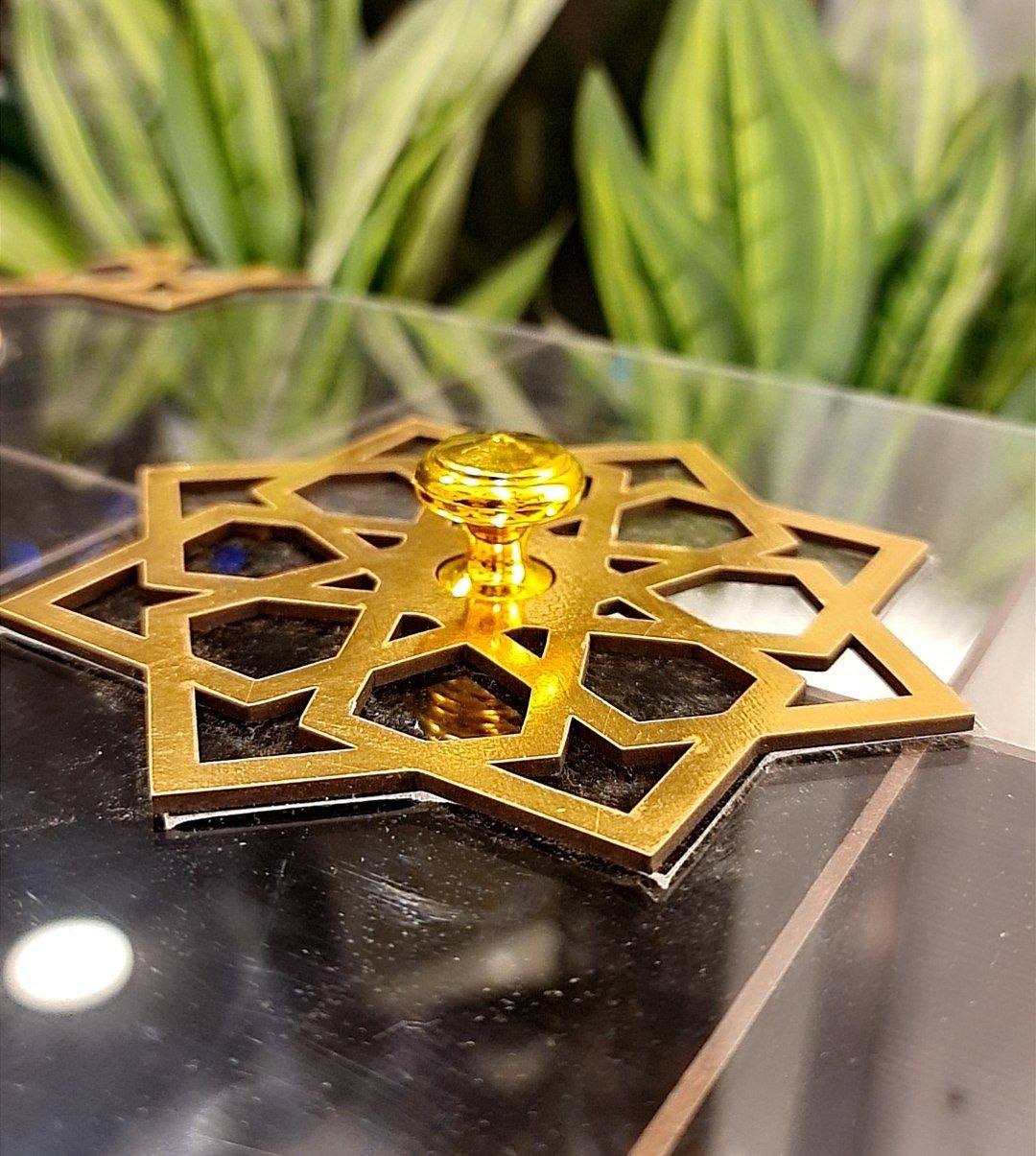 _بوكس اكريليك * خشب مقسم 6 خانه + غطا ارابيسك جولد_للكحك و التسالى و البسكويت _كواليتي عاليه وفنش مميز جدا