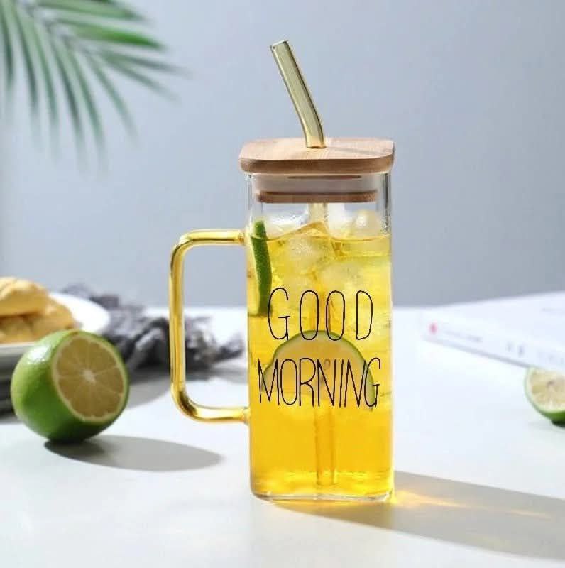 مج زجاج مستورد مزود بغطاء خشب بامبو طبيعى وشاليمو زجاج بيركس سعه 450 مللى